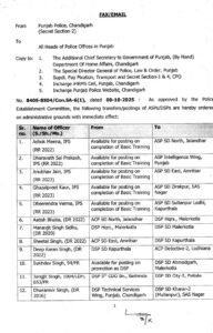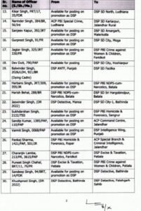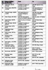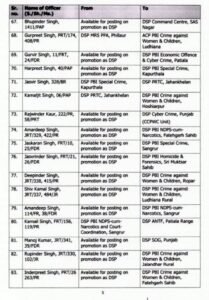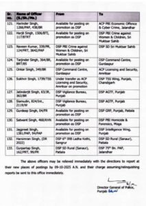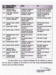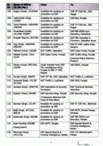 भारत इंफो :पंजाब में बड़े स्तर पर पुलिस प्रशासन में फेरबदल किया गया है। सरकार के जारी आदेशों के मुताबिक 133 डीएसपी और एसीपी रैंक के अधिकारियों का ट्रांसफर किया गया है।