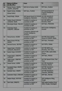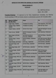 भारत इंफो : पंजाब सरकार के निर्देश पर DGP ऑफिस ने पुलिस विभाग में बड़े पैमाने पर तबादले किए हैं। जारी आदेशों के अनुसार एएसपी और डीएसपी रैंक के कुल 61 अधिकारियों को नई जिम्मेदारियां सौंपी गई हैं। तबादला सूची जारी करते हुए विभाग ने स्पष्ट किया है कि सभी अधिकारियों को तत्काल प्रभाव से अपने नई पोस्टिंग पर पहुंचकर संबंधित वरिष्ठ अधिकारियों को रिपोर्ट करना होगा। आदेशों को तुरंत लागू करने के निर्देश दिए गए हैं।